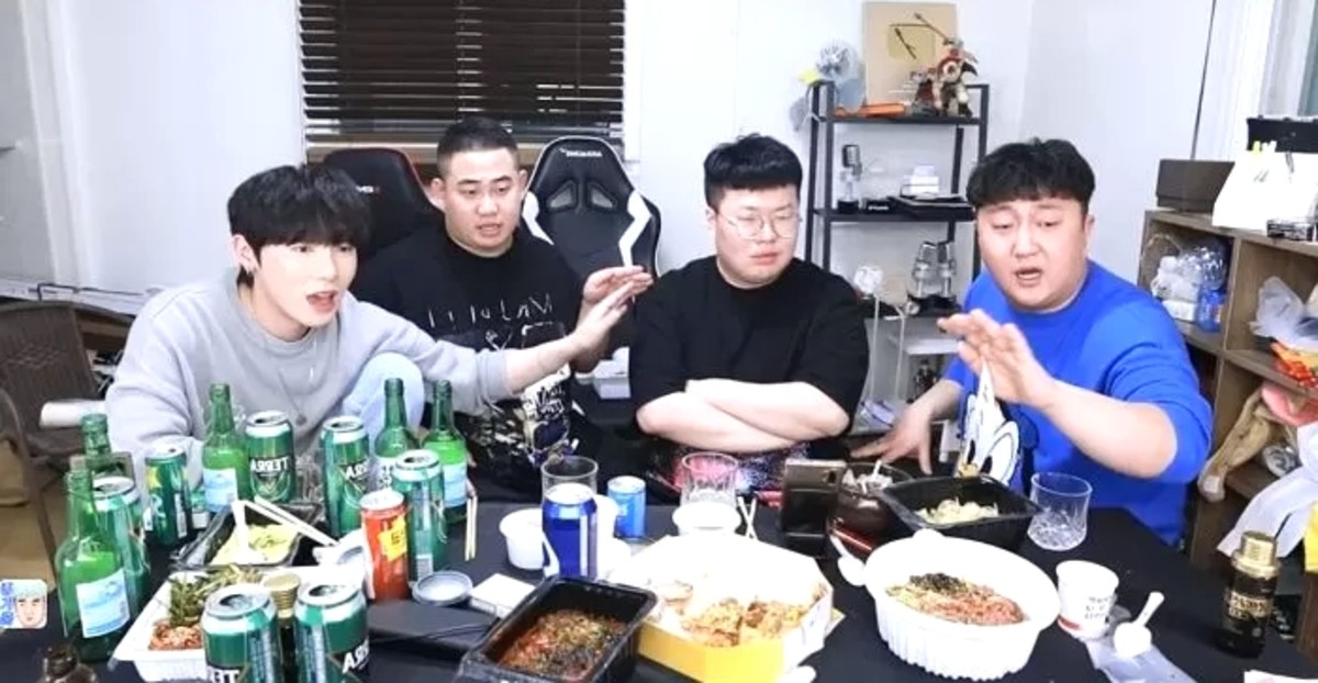 1일 BJ 케이는 와꾸대장봉준(봉준), 킹기훈, 햄벅과 집들이 겸 술먹방을 진행했다.