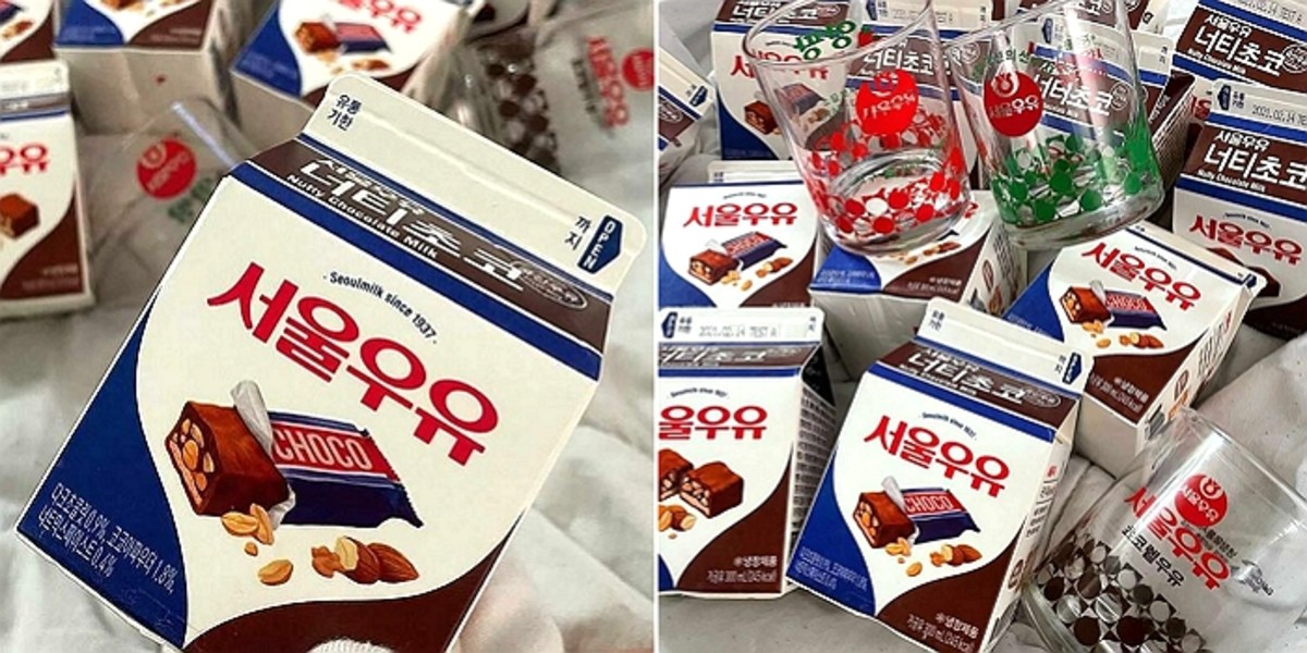 공개된 사진 속 '너티초코 우유'의 귀여운 패키지가 눈에 띈다.