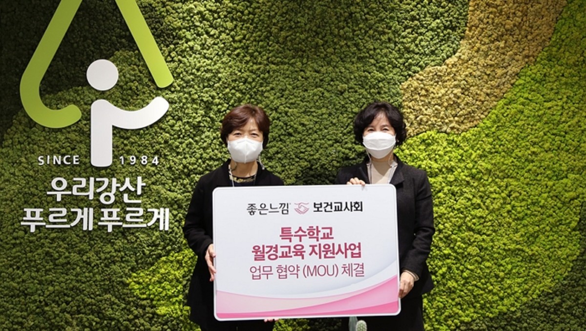 유한킴벌리는 1972년부터 보건교사회와 함께 학생들이 초경을 건강하고 당당하게 맞이할 수 있도록 월경교육을 실시해 오고 있다. 최근에는 특수학교 교사의 편지를 통해, 장애를 가진 청소녀들의 경우 생리대 교체가 쉽지 않음을 인식하고 이들을 돕고, 평등하고 보편적인 월경권을 지킬 수 있도록 보건교사회와의 협업을 통해 ‘좋은느낌 처음생리팬티’와 특수학교 교사를 위한 교구를 개발했다.