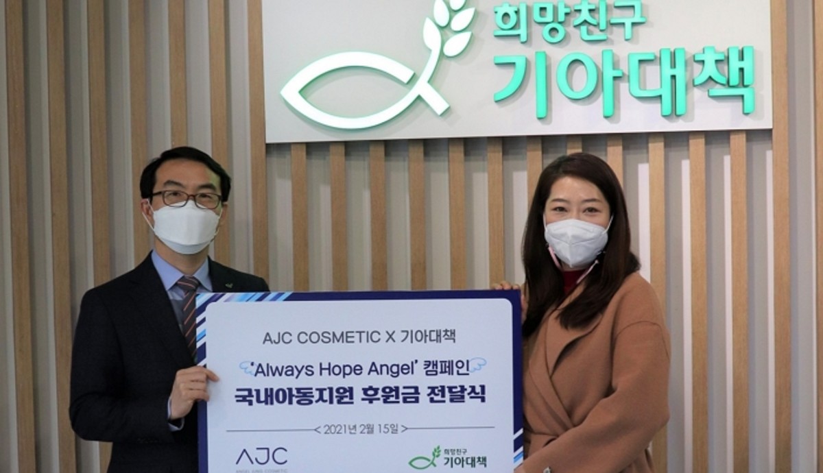 이번 후원금은 AJC코스메틱이 사회공헌 프로그램 일환으로 진행한 고객참여형 기부캠페인 '2021 Always Hope with Angel'을 통해 마련됐다.