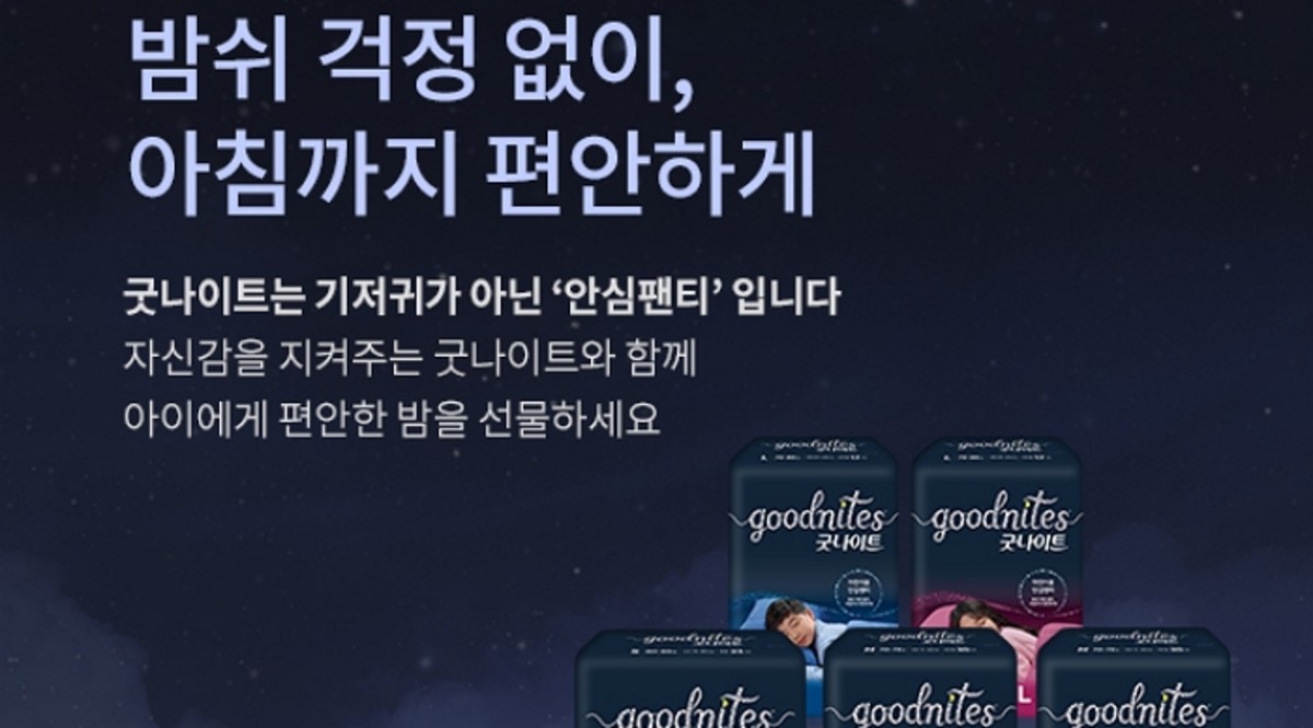 굿나이트는 기저귀를 뗐지만 '밤쉬' 현상을 다시 겪는 아이들이 보다 편안한 밤을 보낼 수 있도록 개발된 제품으로, 흡수력과 디자인을 한층 업그레이드하여 출시했다.