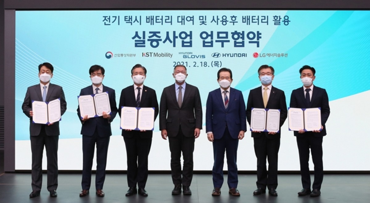 [인사이트] 함철민 기자 = 현대차는 18일 현대차·기아 기술연구소에서 산업통상자원부, 현대글로비스, LG에너지솔루션, KST모빌리티와 전기 택시 배터리 대여 및 사용후 배터리 활용 실증 사업을 위한 업무협약을 체결했다고 밝혔다.