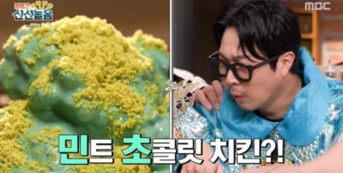 19일 오후 방송된 MBC 예능 프로그램 '볼빨간 신선놀음'에서는 '초코반 민초반 치킨'이 등장해 모두를 경악하게 만들었다. 세상 처음 보는 충격적인 비주얼에 MC들은 놀라움을 금치 못했다. 유민상은 "충격과 공포다!"라고 소리쳤다. 성시경은 오만상을 지었다.