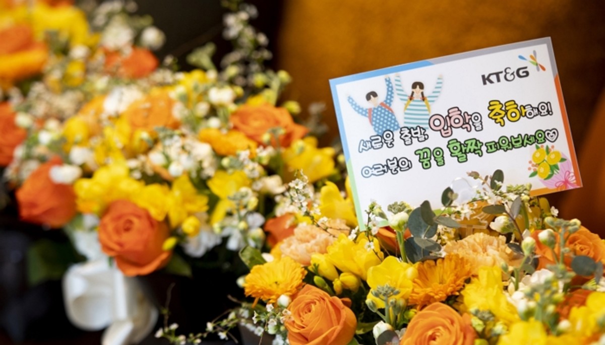 KT&G는 초등학교 입학 자녀들에게 전달하던 축하선물에 꽃바구니를 추가로 발송하기로 했으며, 대상도 중·고등학교 입학 자녀들까지 확대해 총 550여명에게 꽃바구니를 전할 예정이다.