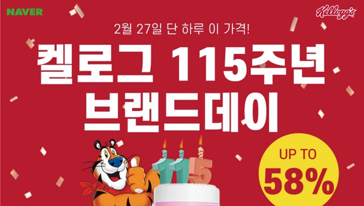 [인사이트] 김소영 기자 = 농심켈로그가 오는 27일(토) 네이버 공식 스마트 스토어에서 '켈로그 115주년 브랜드데이'를 통해 대규모 할인 혜택과 '쇼핑 라이브'를 실시한다고 밝혔다.