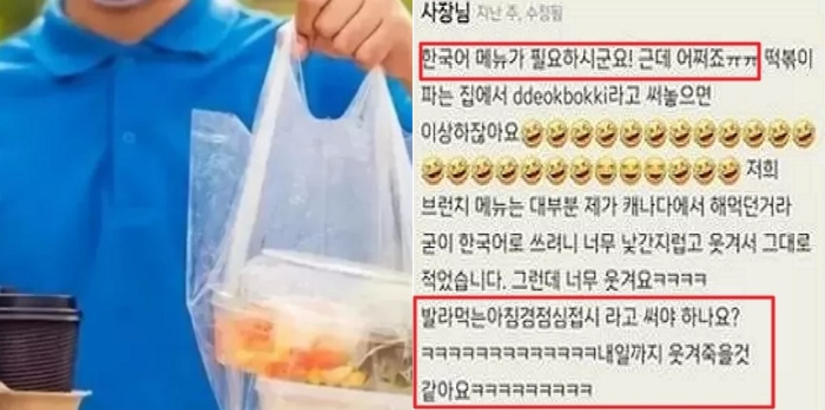 [인사이트] 임기수 기자 = 영어로 된 메뉴를 한국어로 수정해 달라고 요청한 고객의 리뷰에 해당 가게 사장이 남긴 답글이 논란이 되고 있다.