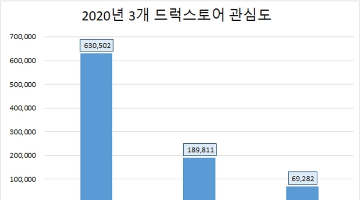2일 글로벌빅데이터연구소는 지난해 1월부터 12월까지 1년간 뉴스·커뮤니티·블로그·카페·유튜브·트위터·인스타그램·페이스북·카카오스토리·지식인·기업/조직·정부/공공 등 12개 채널 22만개 사이트를 대상으로 3개 드럭스토어에 대한 빅데이터 분석을 실시했다고 밝혔다.