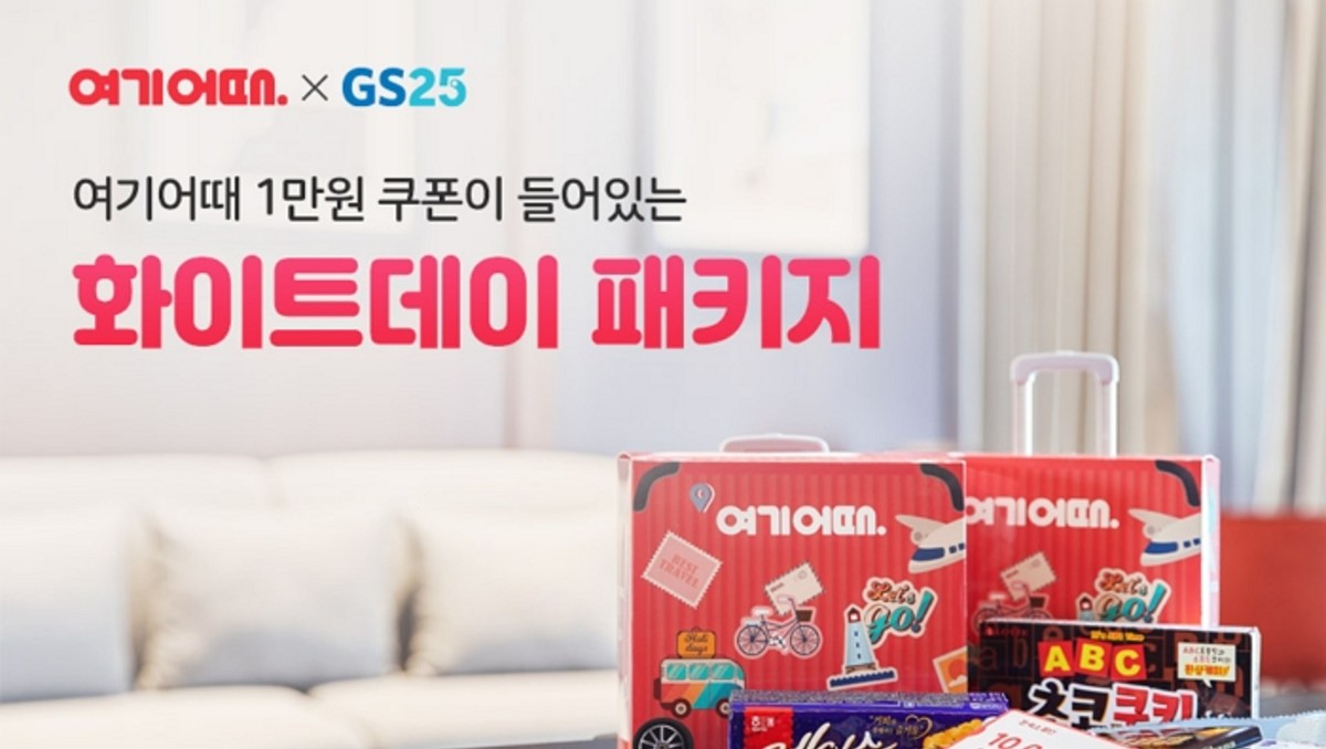 여기어때는 GS25의 주요 거점 점포(약 1500여곳)에서 '화이트데이 여기어때' 패키지를 판매한다.
