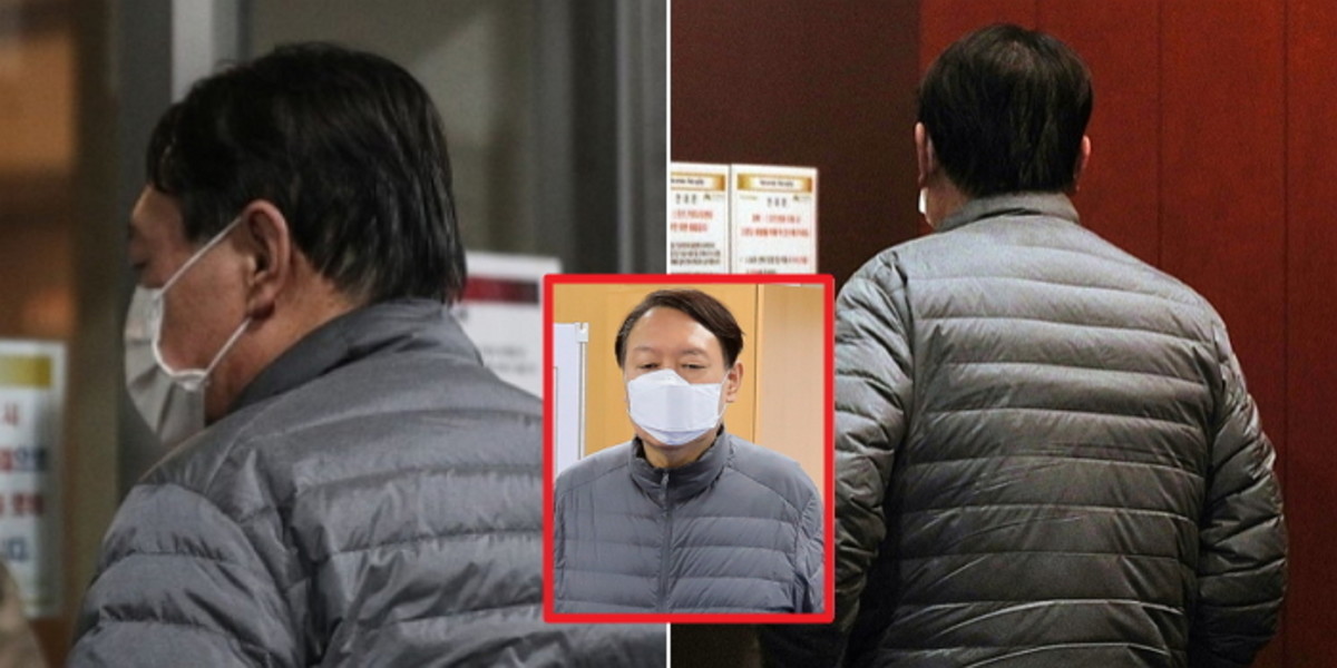카메라에 포착된 윤 전 총장의 모습은 예전과 변함이 없었다. 그를 상징하는 '회색 경량 패딩' 차림이었다.