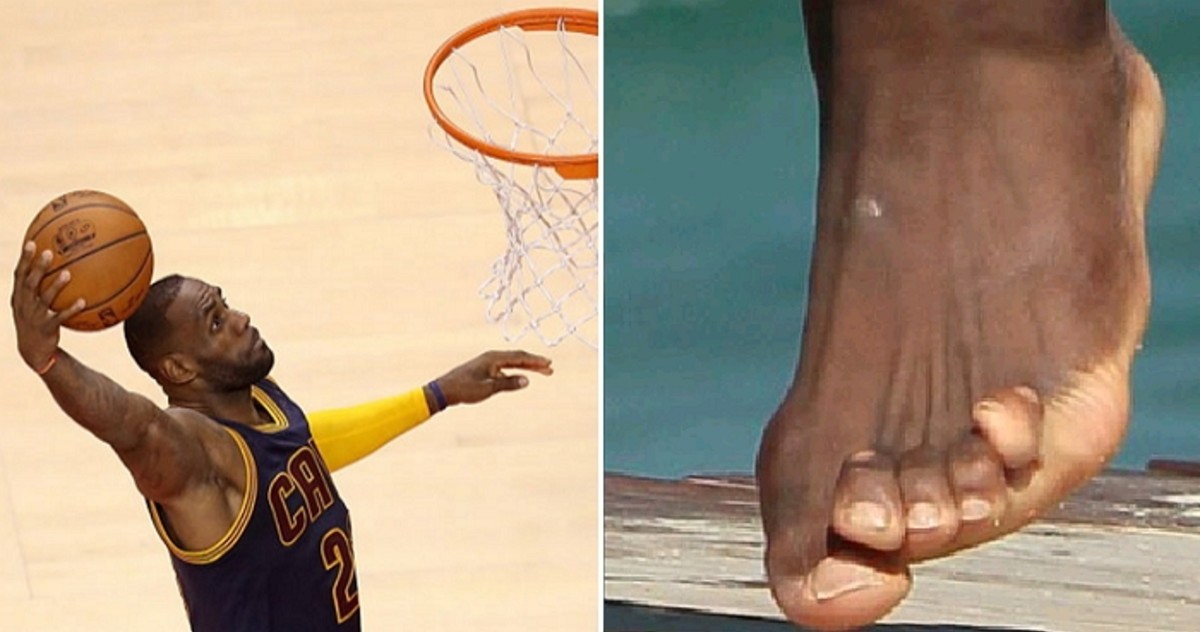 눈에 띄는 것은 사진 속 르브론의 맨발 상태이다. 그는 엄지발가락이 발 안쪽으로 심하게 꺾이고 휘어 있었다.