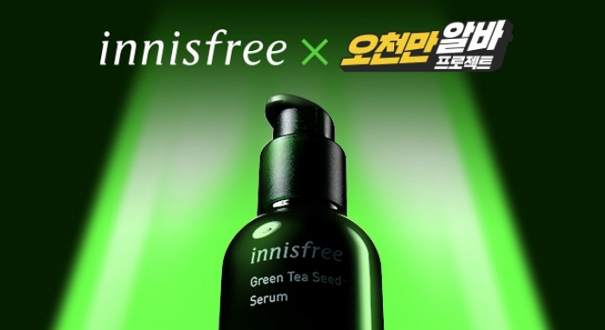 지난 1일 이니스프리가 출시한 '그린티 바이옴'을 함유한 4세대 수분 세럼 NEW '그린티 씨드 세럼'을 사용한 후 진정성 있는 리뷰를 남겨줄 '찐플루언서' 알바를 모집한다.