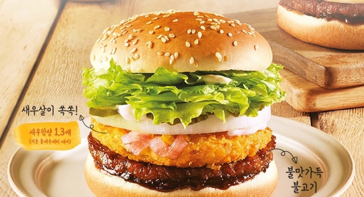 '새우불고기버거'는 담백한 불고기 패티에 프리미엄 새우 패티를 추가하여, 풍성한 볼륨감과 함께 한 번에 두 가지 맛의 버거를 동시에 느낄 수 있다.