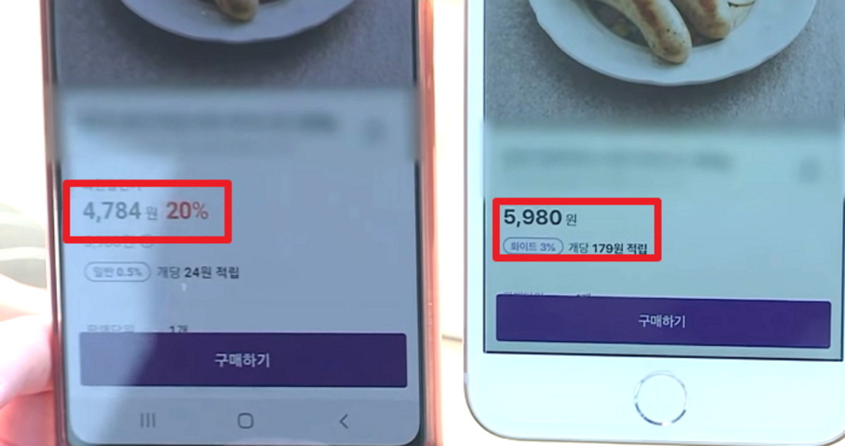 이에 따르면 마켓컬리를 통해 물건을 자주 구매하는 A씨는 지인과 같은 물건을 시켰는데 최대 1,500원의 차이가 났다.