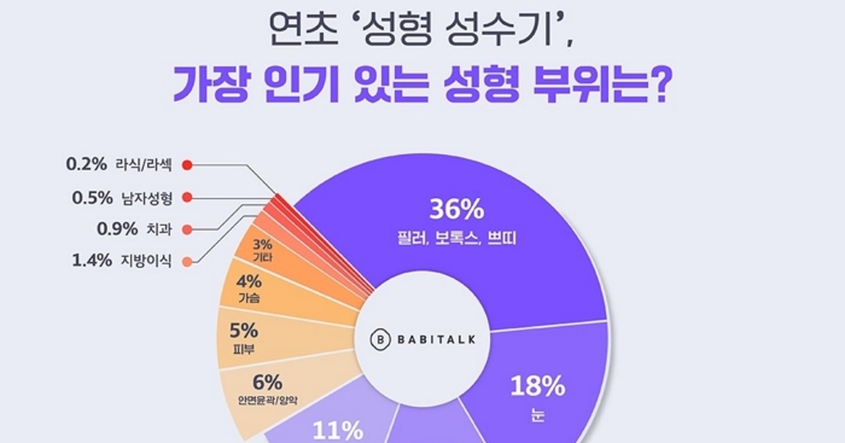 미용의료 정보 앱 바비톡이 올해 1월부터 2월까지 2개월간 자사 이벤트 상담 신청 건수를 분석한 결과 일반 수술이 아닌 '시술' 영역인 '필러, 보톡스, 쁘띠’가 36%의 비중을 차지한 것으로 확인됐다.