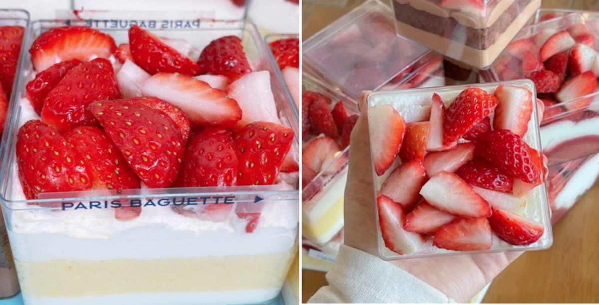 해당 제품은 신선한 생딸기가 흘러 넘칠 정도로 가득 담겨 있고, 그 아래를 신선한 딸기와 고소한 크림이 채웠다.