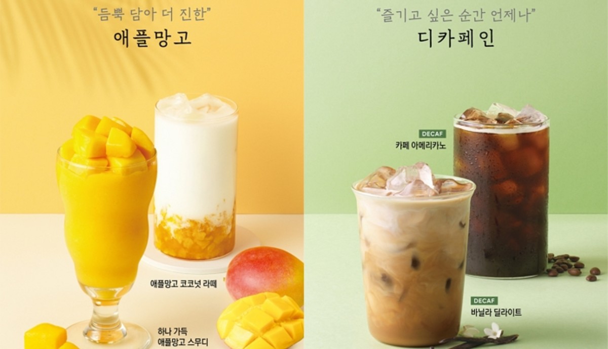 '하나 가득 애플망고 스무디'는 한 개 분량의 애플망고 과육이 들어간 스무디로 애플망고 과육 토핑을 가득 얹어내 전용 잔에 담겨서 제공된다. '애플망고 코코넛 라떼'는 상큼하고 달콤한 애플망고와 고소한 코코넛밀크가 조화된 과일 라떼다.