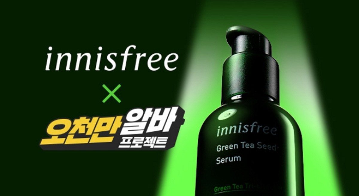 이니스프리 관계자는 "알바천국 오천만알바 프로젝트는 신제품 NEW '그린티 씨드 세럼'의 출시를 알리고 제품 체험 기회를 제공하는 캠페인의 일환으로, 많은 분들이 이벤트에 참여 해주신 덕분에 높은 참여율을 달성하며 성황리에 마쳤다"며 "그린티 바이옴 과학을 더해 한층 더 진화된 세럼으로 거듭난 NEW '그린티 씨드 세럼'에 보내주신 관심과 성원에 감사드리며, 앞으로도 색다른 고객 경험과 다양한 혜택으로 보답하겠다"고 전했다.