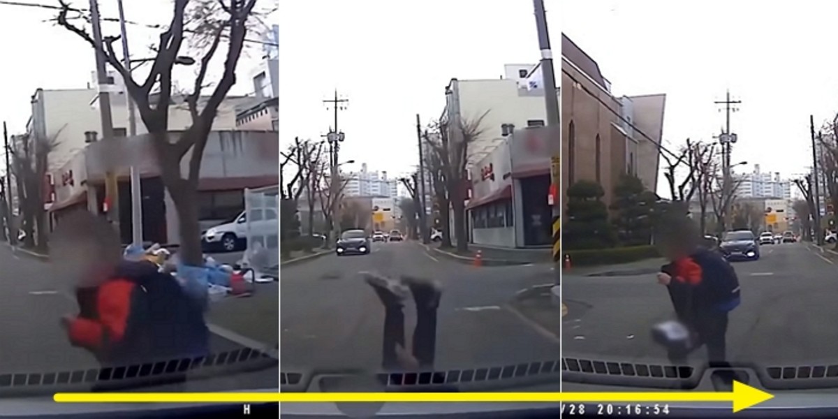 인도를 걷다 뛰쳐나온 남아는 차에 부딪힌 후 튕겨 나갔으며 놀란 운전자는 급히 차를 세웠다.