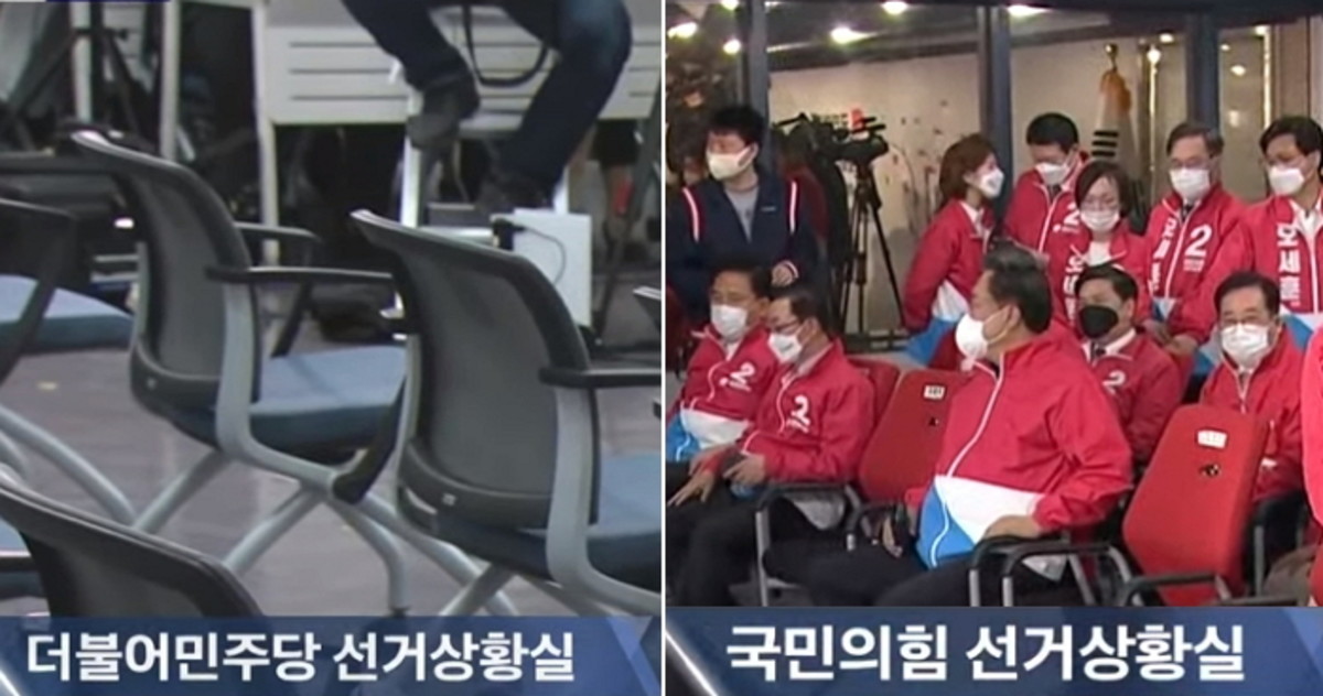 [인사이트] 김한솔 기자 = 4.7 재·보궐선거 본투표 마감 시간이 채 5분 정도 남은 시각. 각 정당의 개표 상황실이 극명한 대비를 보이고 있다.