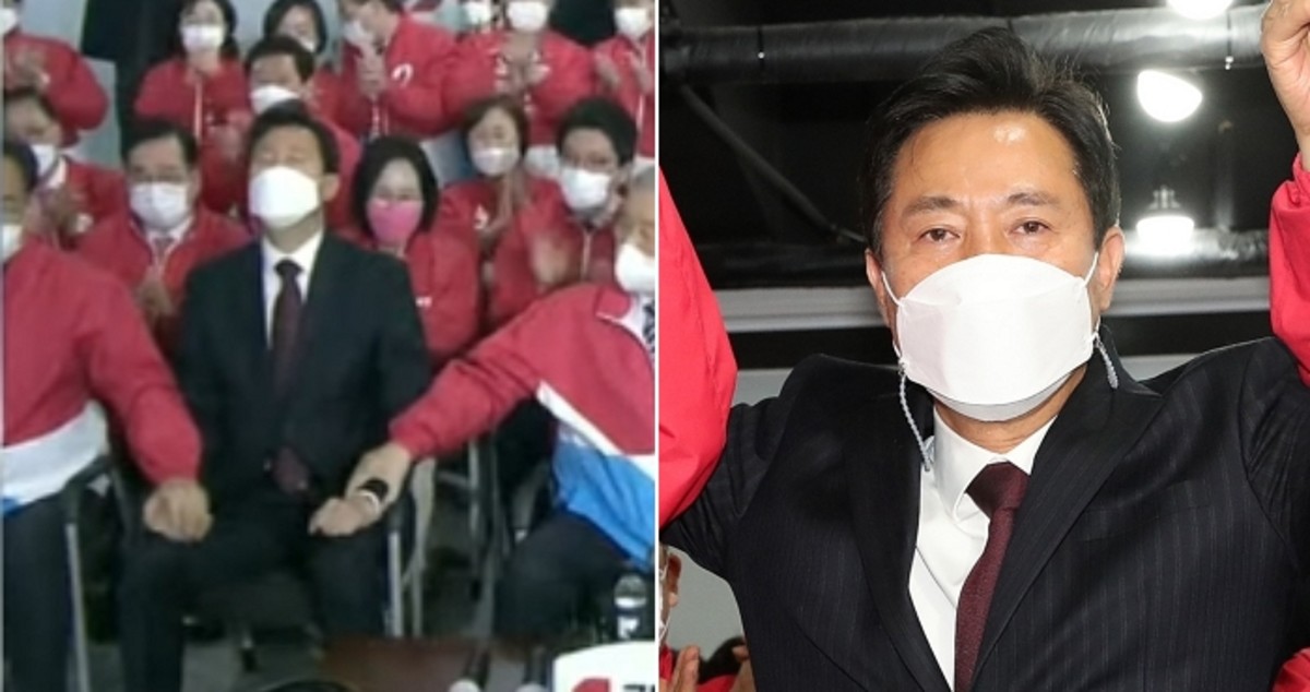 오 후보는 이날 오후 8시 15분 국민의힘 당사에서 출구조사 결과를 접했다.
