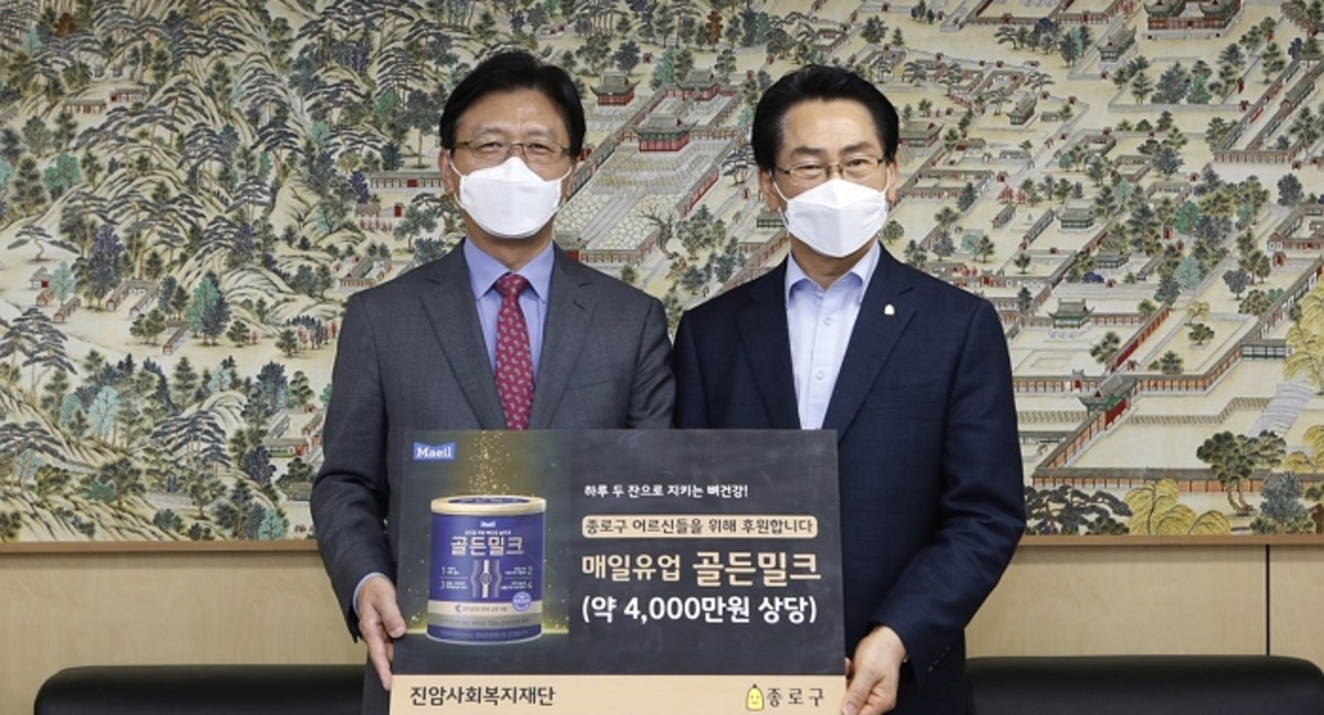 전달식에는 김영종 종로구청장, 매일유업 조성형 부사장 등이 참석했다. 매일유업 본사가 위치한 종로구 관내 어르신의 뼈건강을 위해 진암사회복지재단은 약 4천만 원 상당의 골든밀크 제품을 후원한다.
