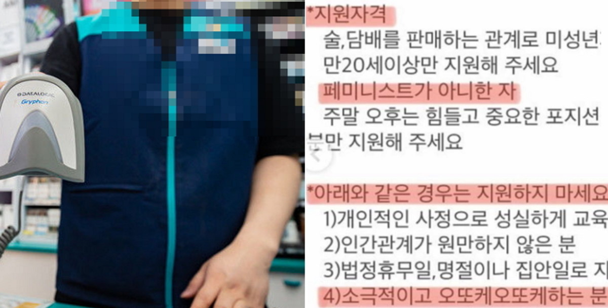 화제를 모은 알바 지원 조건은 바로 '페미니스트가 아니한 자'였다.