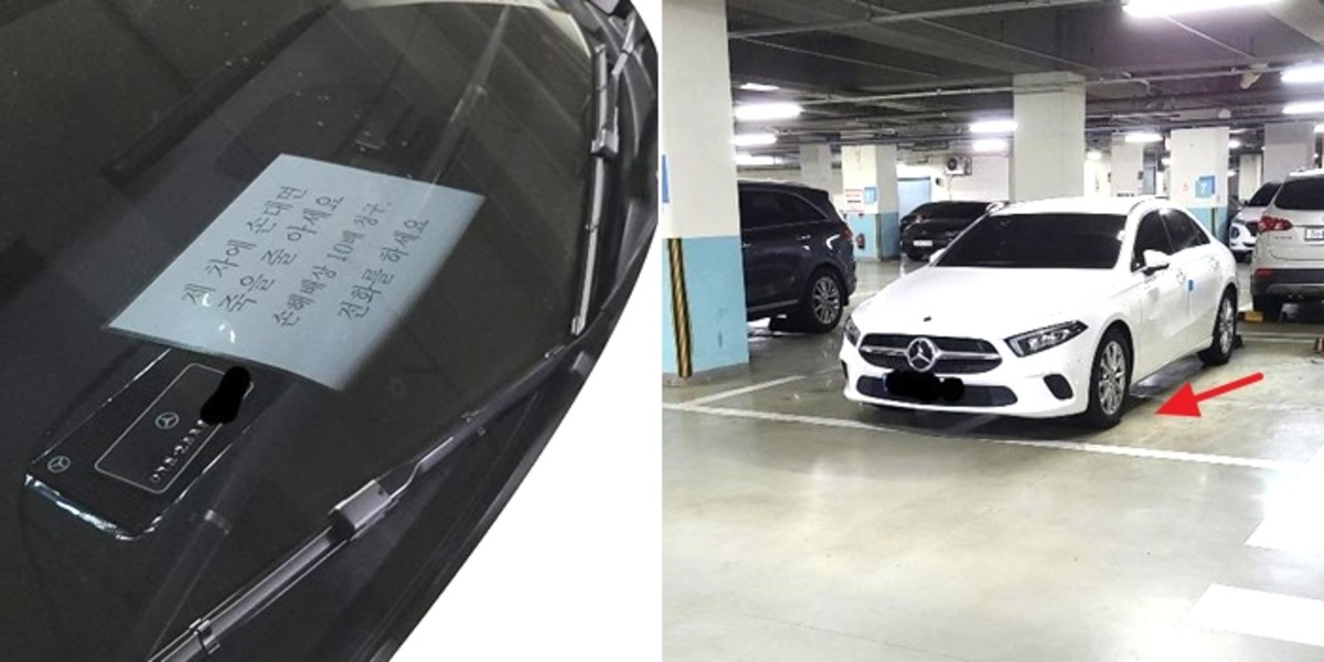 운전이 미숙해 차를 잘못 댔다는 말은 커녕 "건들면 죽는다"라는 협박성 문구는 허를 차게 만들었다.