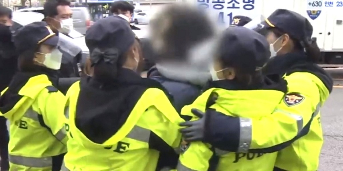 시위 도중 돌발 행동을 한 여대생 1명에게 여경 7명이 달려든 것이다. 여경들은 여대생을 에워싼 뒤 "폭력을 행사할 경우 공무집행방해 현행범으로 체포될 수 있다"고 경고했다.