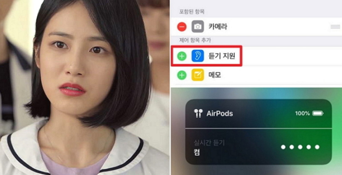 이어 '듣기 지원'을 항목에 추가하고 에어팟을 연결한 뒤 실시간 듣기 시작을 활성화시키면 된다.
