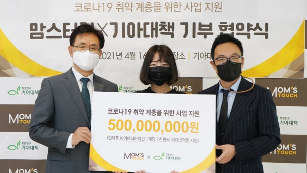 버거·치킨 브랜드 '맘스터치'를 운영하고 있는 맘스터치앤컴퍼니는 지난 16일, 서울 강서에 위치한 기아대책 1층 로비에서 '코로나 19 취약계층 지원을 위한 기부' 협약식을 가졌다.