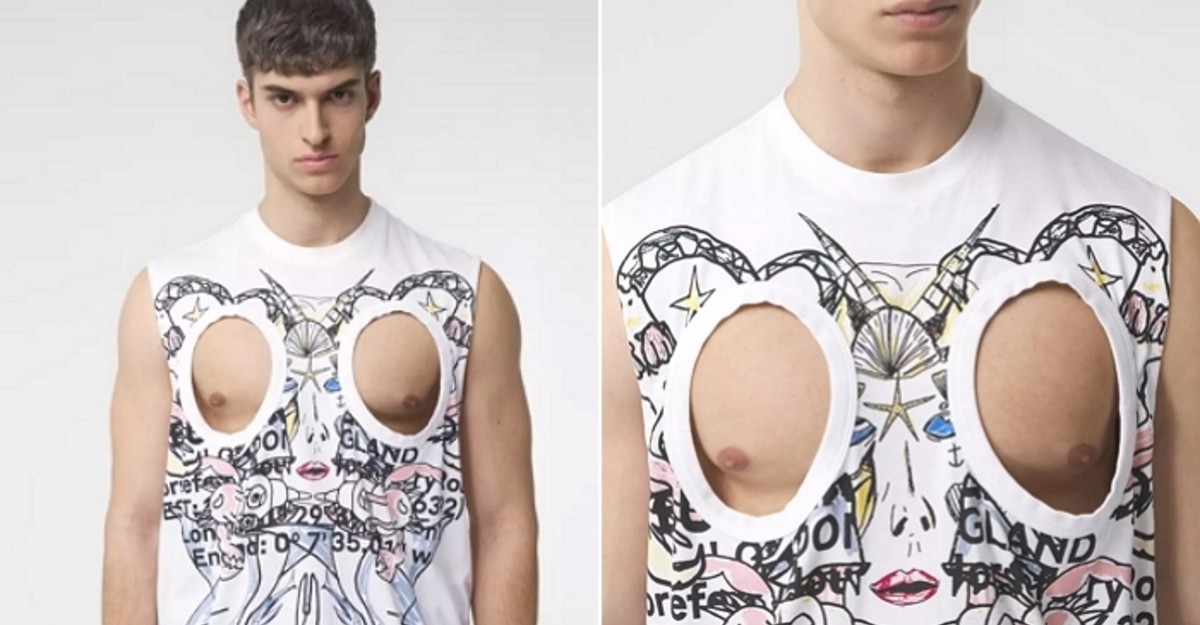 다소 민망한 부위에 구멍이 뻥 뚫린 파격적인 디자인의 티셔츠를 선보인 버버리의 신상이 바로 그런 제품이다.