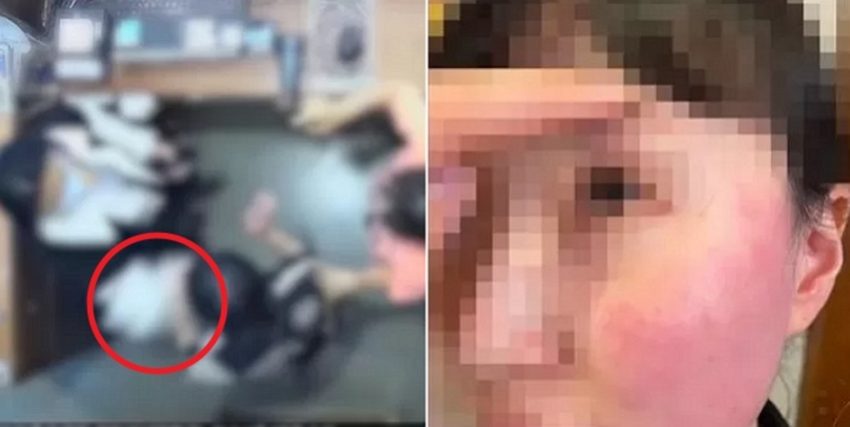 영상에서 A씨는 매장에 들어서자마자 일하던 직원을 끌어당기고 뒤통수를 때렸다.