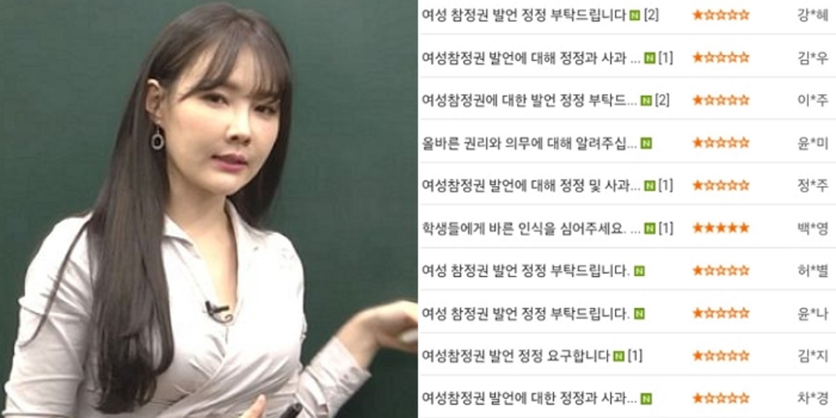 해당 강의 영상이 공개된 직후 일부 여성은 이 강사의 발언이 여성을 비하했다며 강하게 반발했다.