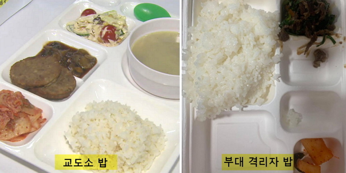 장정들의 한 끼 식사라기엔 한눈에 봐도 부실해 보이는 구성이다. 이어 KBS1 '뉴스광장'에 소개됐던 구치소 재소자들의 식사가 함께 공개됐다.