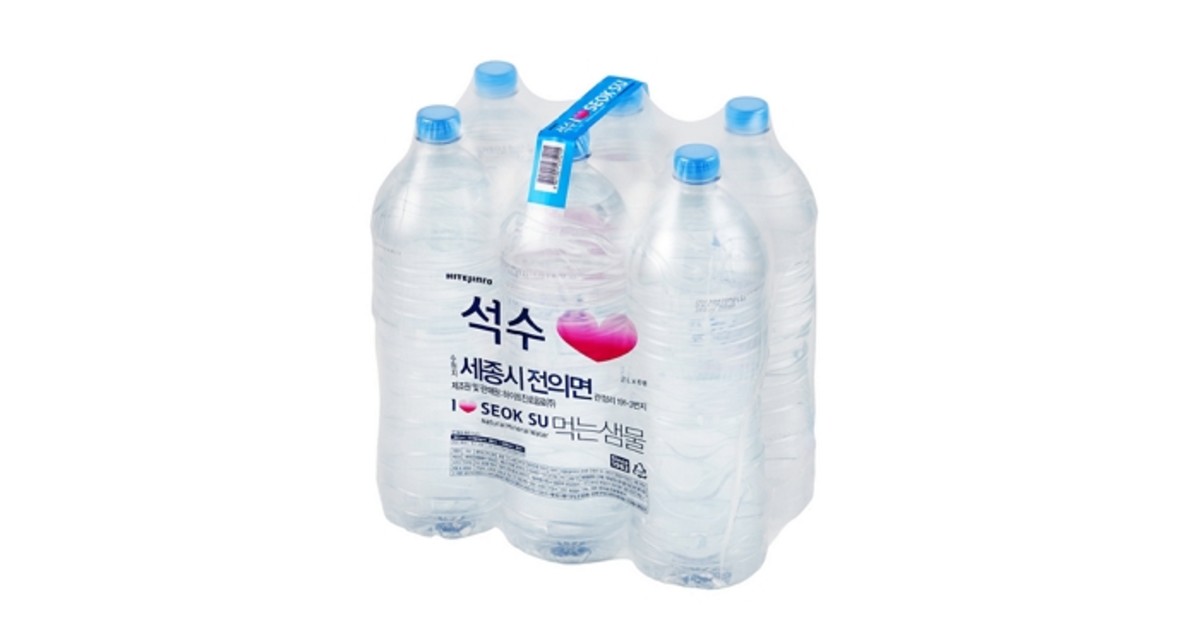 이번에 출시한 '석수' 2L 6입팩은 기존 개별 용기 전면에 부착되던 라벨을 제거하고, 6개입 묶음 포장재 외면에 제품명과 필수 표기사항인 용량, 수원지, 무기질 함량 등을 넣었다.