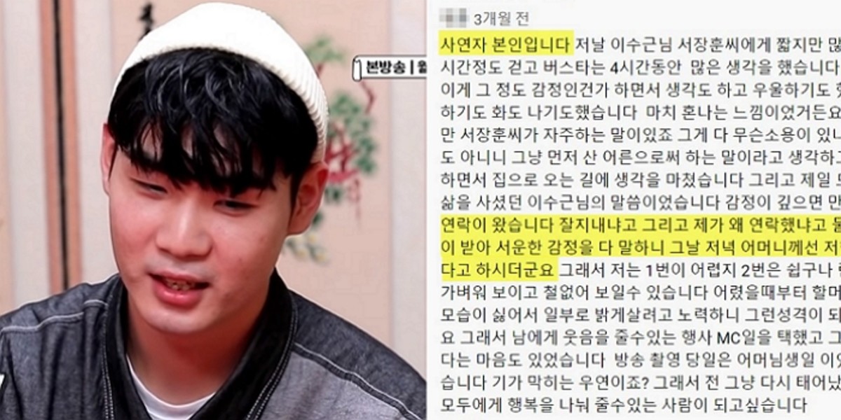 이후 A씨는 해당 방송의 유튜브 다시보기 영상 댓글을 통해 근황을 전했다.
