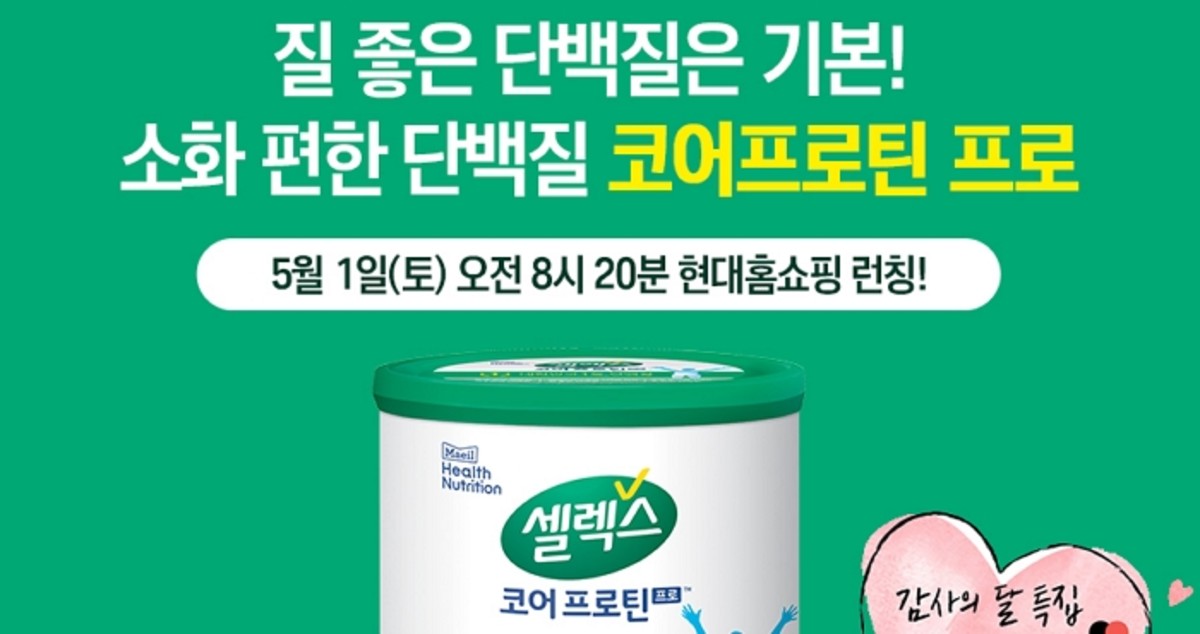 매일유업은 오는 5월 1일 오전 8시 20분 방송되는 '왕영은의 톡 투게더' 감사의 달 특집에서 최근 출시한 건강기능식품 '셀렉스 코어프로틴 프로'를 홈쇼핑 최초로 선보인다.