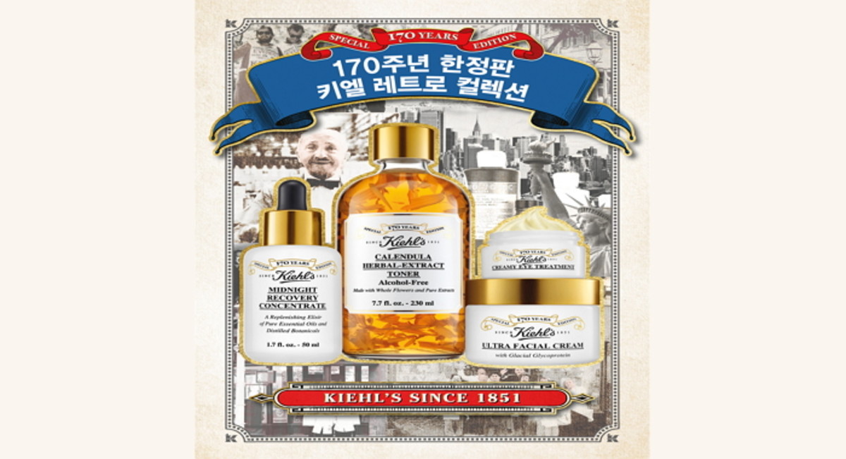 이번 키엘 170주년 리미티드 에디션은 베스트셀러 제품을 키엘이 시작된 최초의 모습인 조제 약국을 상징하는 유리병 패키지로 재해석한 '레트로 컬렉션'과, 170년 역사 속에서 시대별 뷰티 트렌드를 대표했던 제품들을 재출시하는 '앤티크 컬렉션'으로 구성됐다.