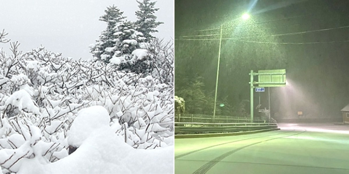 지난 1일 밤 8시 경 올라온 한 사진 속에는 가로등 불빛 아래 눈이 펑펑 내리고 있는 것을 알 수 있다. 도로도 온통 흰 눈으로 덮여있다.