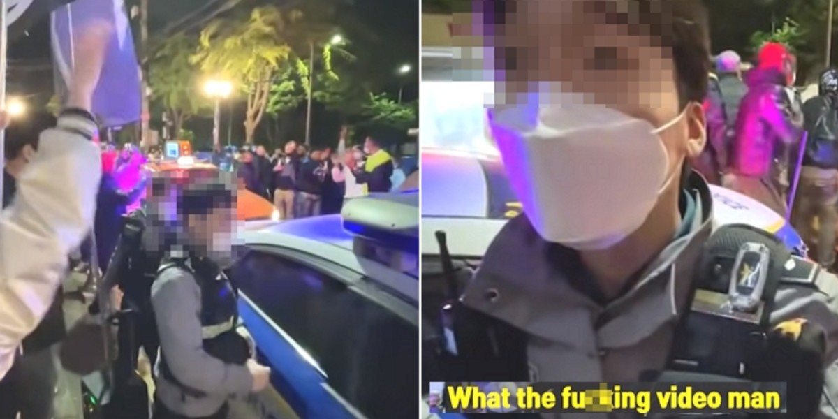 그 경찰은 시민에게 욕설을 한 것은 물론 제대로 된 체포 고지도 하지 않은 채 현행범으로 체포하겠다고 협박했다.