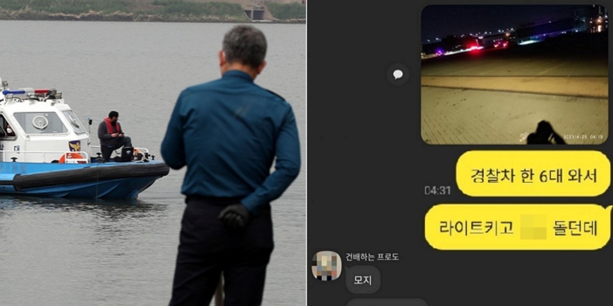 오전 4시쯤 그는 친구에게 한강공원에 경찰이 출동한 것으로 보이는 사진과 함께 "경찰차 6대가 오더니 후레쉬 켜고 돈다"는 메시지를 보냈다.