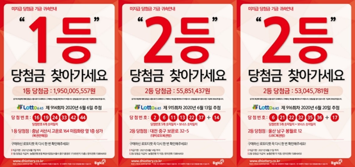 [인사이트] 김한솔 기자 = 동행복권은 로또복권 914회, 915회, 916회차 미수령 당첨금의 지급기한이 한 달여 밖에 남지 않았다고 4일 밝혔다.