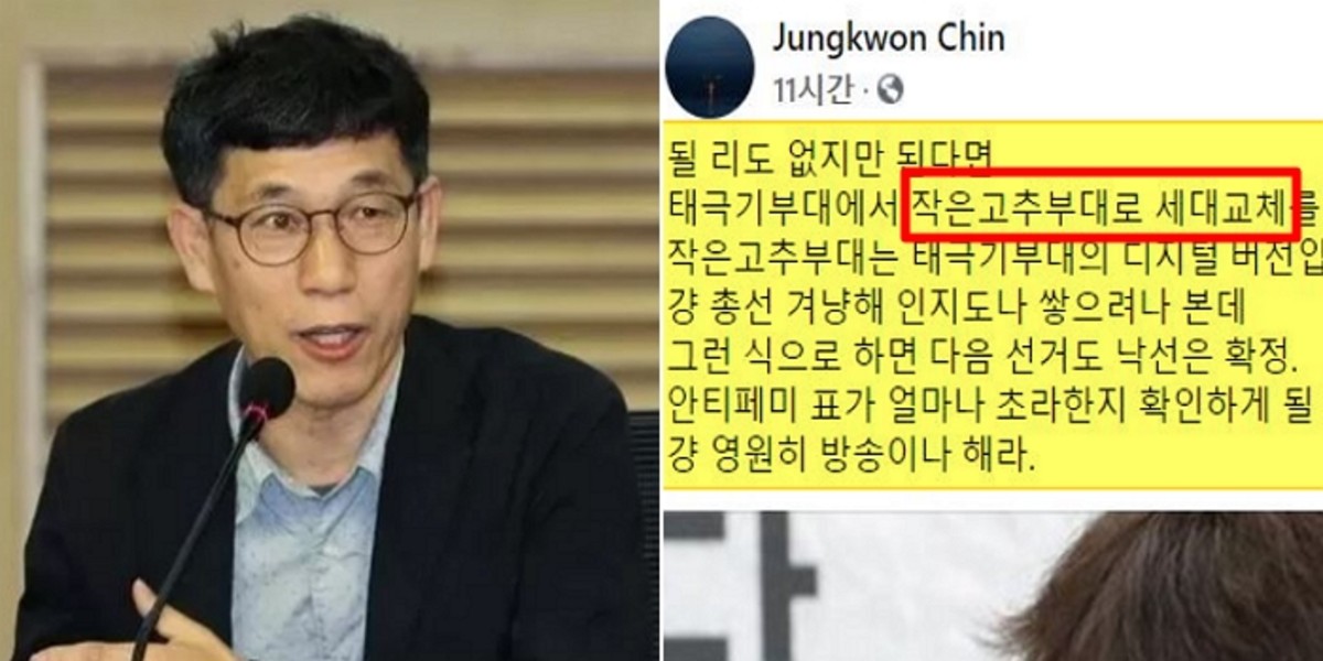 이에 진중권 전 동양대 교수는 "총선을 겨냥해 인지도나 쌓으려는 것"이라며 "(당대표가) 될 리도 없지만, 만약 된다면 태극기부대에서 작은고추부대로 세대교체를 이루는 셈"이라고 했다.