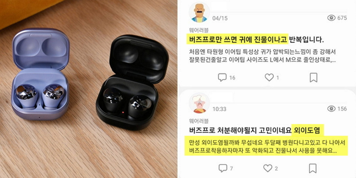 7일 업계에 따르면 삼성전자 커뮤니티 '삼성멤버스'에는 다수 갤럭시 프로 사용자들의 '외이도염' 호소글이 게재되고 있다.