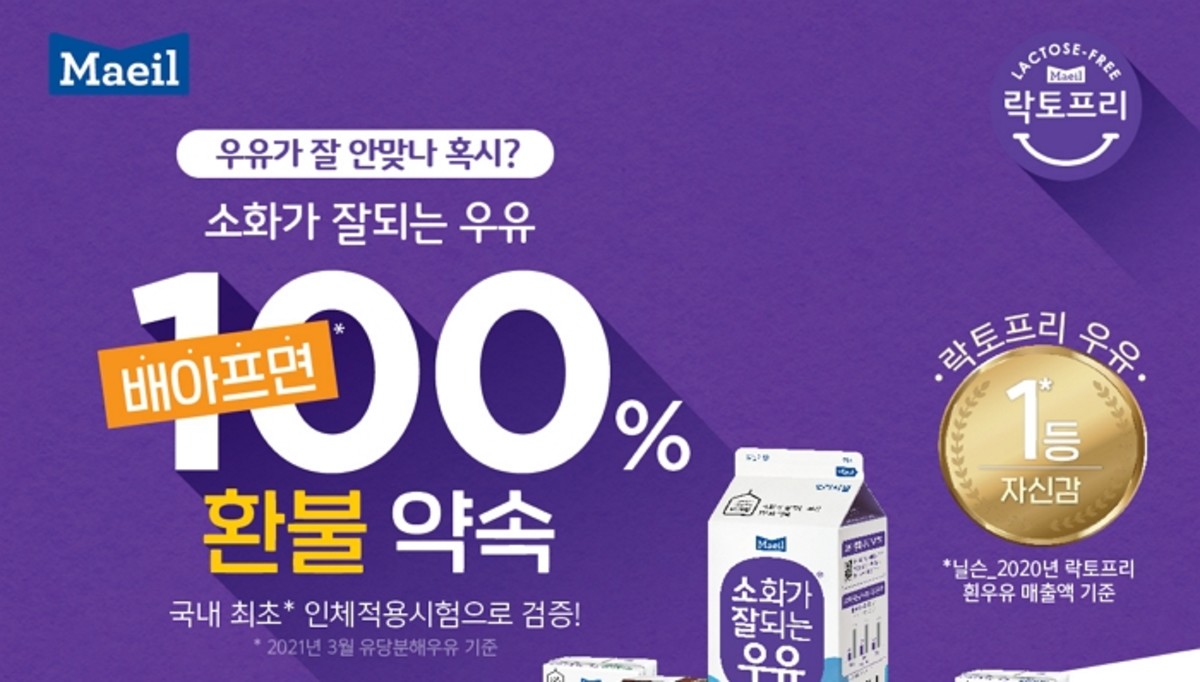 소화가 잘되는 우유를 음용한 뒤 복통을 경험한다면 왕복 배송비를 제외한 제품 구매 금액 전액을 환불받을 수 있다. 해당 이벤트는 캠페인 홈페이지를 통한 구매에 한해서 신청 가능하다.