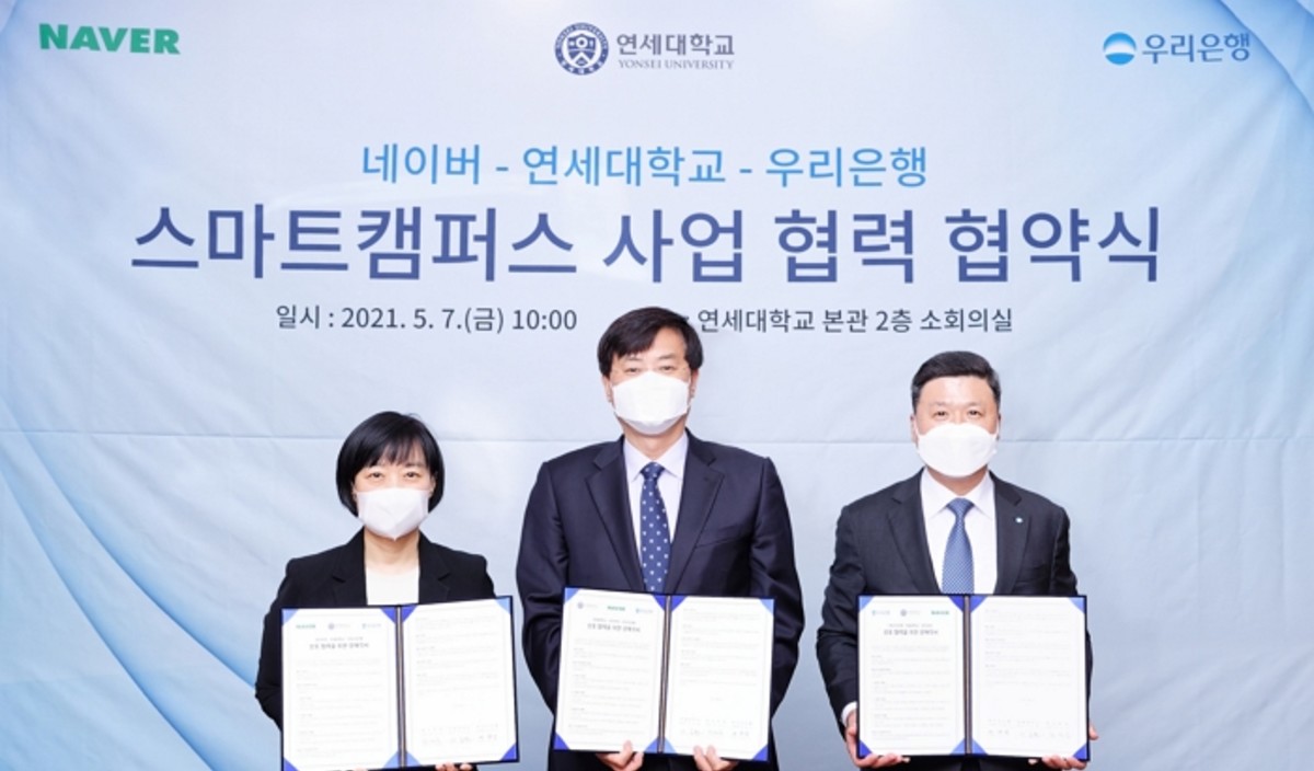 [인사이트] 전준강 기자 = 우리은행은 연세대학교, 네이버와 함께 '연세대학교 전용 스마트캠퍼스 공동 구축을 위한 3자 업무협약'을 체결했다고 7일 밝혔다.