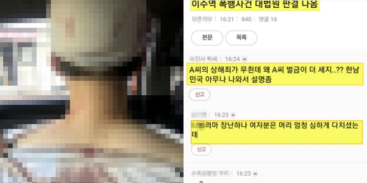 이들은 "여자분은 머리 엄청 심하게 다치셨는데 장난하냐", "어이없다", "미친 거 아니냐" 등 격한 반응을 보였다.