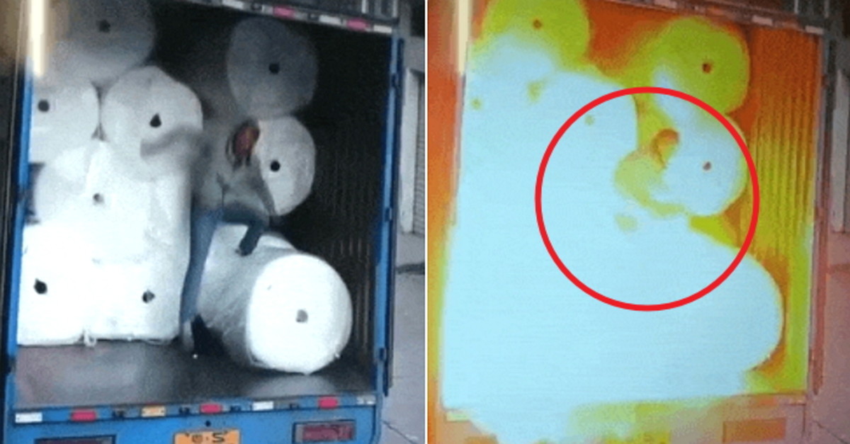 화물칸이 가득 차자 한 남성이 먼저 땅에 내려온 뒤 또 다른 남성도 착지를 시도했다.