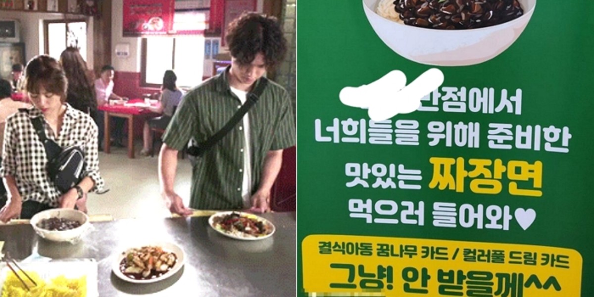 간판에는 "ㅇㅇ반점에서 너희들을 위해 준비한 맛있는 짜장면 먹으러 들어와"라며 "결식아동 꿈나무 카드 / 컬러풀 드림 카드 그냥! 안받을께^^"라고 적혀있다.