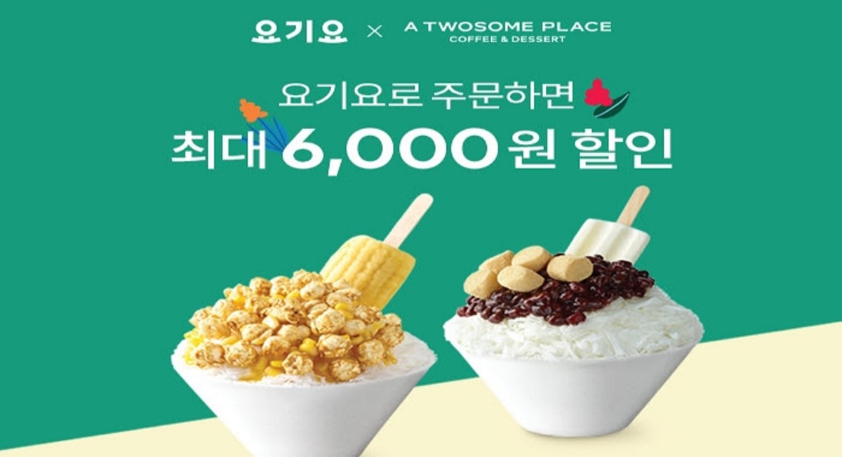 먼저 투썸은 요기요와 함께 지난 5월 10일부터 오는 16일까지 7일간 '아임뉴 빙수' 프로모션을 진행한다. 여름 시즌에만 만나볼 수 있는 투썸 빙수 주문 시 6000원을 할인 받을 수 있다.